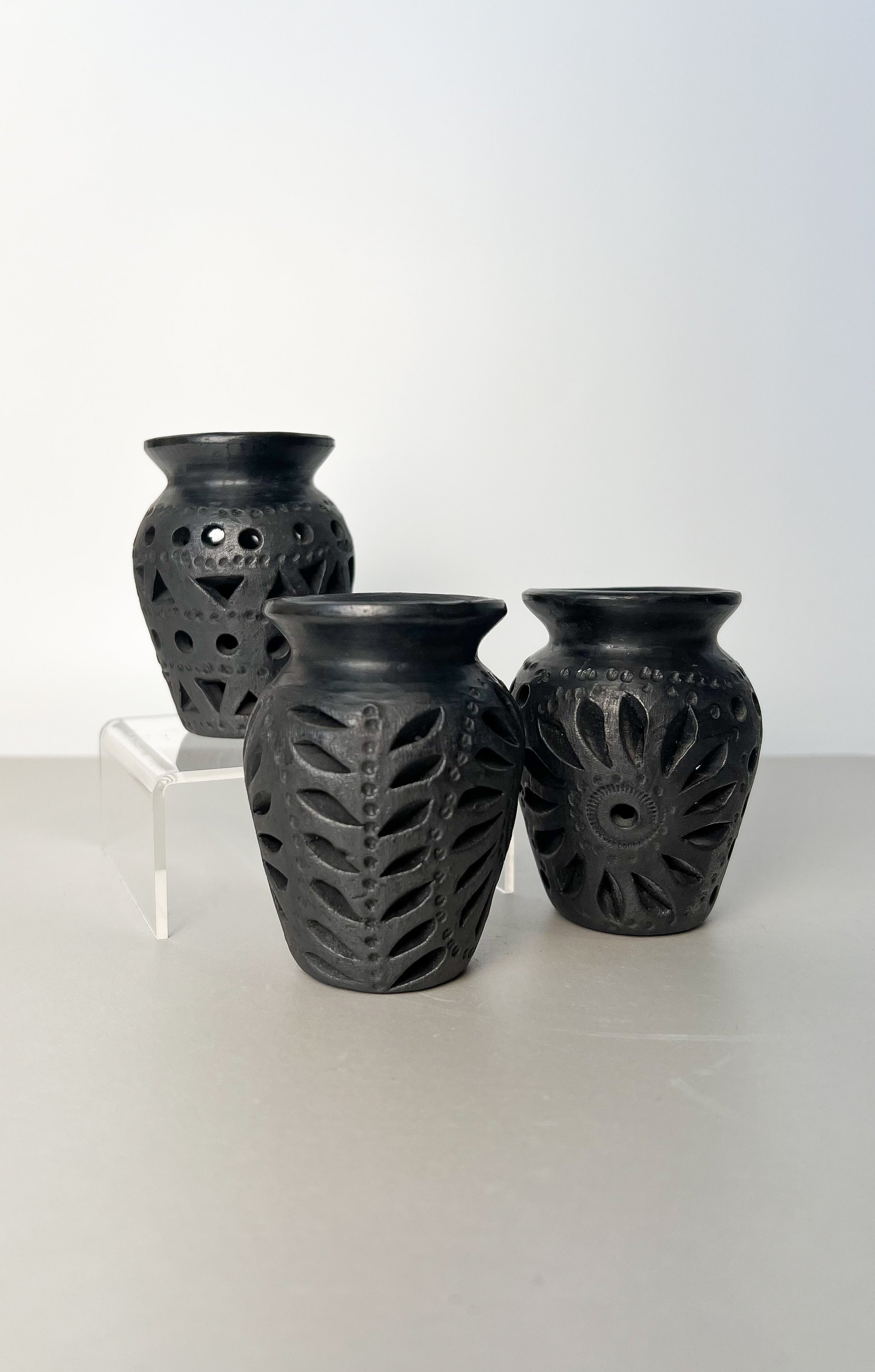 Handcrafted in San Bartolo Coyotepec, Oaxaca, barro negro is a unique black clay pottery known for its stunning metallic sheen and rich cultural heritage. Each piece is made using traditional techniques passed down through generations, blending artistry and tradition into functional and decorative works of art. Each piece takes about 20 days to complete.